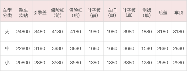 | 中型车 | 22800 | 3180 | 3880 | 3880 | 1680 | 1680 | 3680 | 1580 | 2880 | 2880 |