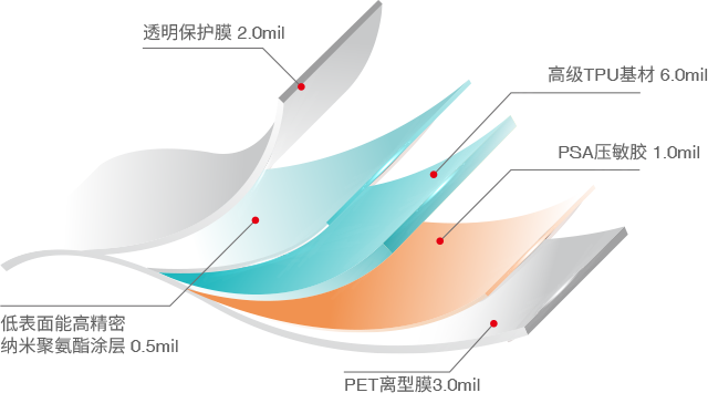 以色列哈尼塔高端制造,承袭国际精工品质——产品采用市场主流畅销厚度 7.5mil,搭载 XProof™ 高分子链技术与浸入式合成工艺,将低表面能纳米聚氨酯涂层与耐黄变、抗刮自修复、高透光的 TPU 基材深度融合,构筑高致密一体化膜层结构。