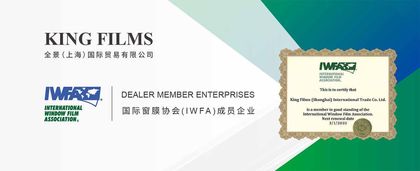 全景(上海)国际贸易有限公司(King Films (Shanghai) International Trade Co., Ltd.)是国际窗膜协会(IWFA)经销商成员,King Films® 汽车膜品牌始终以严苛的品质标准为基石,从原料甄选、生产工艺到成品检测,每一道环节都执行严格管控,确保产品性能稳定、品质可靠、安全环保。