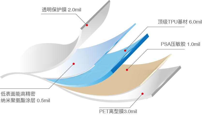 以色列哈尼塔高端制造,承袭国际精工品质——产品采用市场主流畅销厚度 7.5mil,搭载 XProof™ 高分子链技术与浸入式合成工艺,将低表面能纳米聚氨酯涂层与耐黄变、抗刮自修复、高透光的 TPU 基材深度融合,构筑高致密一体化膜层结构。